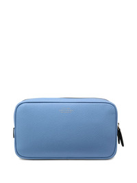 double zip panama wash bag Highlights - Pale blue - Panama leather - Double zip closure - Rectangular shape - Subtle embossed logo Made in Italy Composition Outer: Grained Leather 100% SIZE & FIT Measurement DEPTH 3.74 in(9.5 cm) HEIGHT 4.72 in(12 cm) WIDTH 8.46 in(21.5 cm)