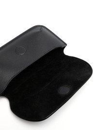 leather sunglasses case Highlights - Black - Leather - Grained texture - Logo stamp to the front - Foldover top with magnetic fastening - Main compartment - Suede lining Imported Composition Inner: Calf Suede 100% Outer: Calf Leather 100% SIZE & FIT Measurement DEPTH 1.18 in(3 cm) LENGTH 3.93 in(10 cm) WIDTH 7.08 in(18 cm)