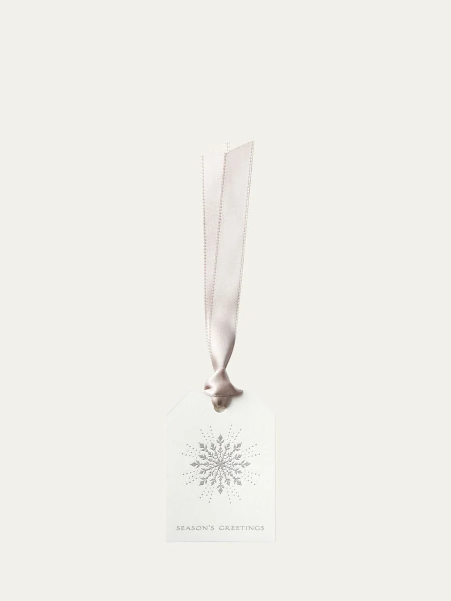 Gift tags featuring a holiday snowflake motif Ribbon for tying to any gift Each, approx. 3.3"L x 2.4"W Set of 10 paper gift tags Imported