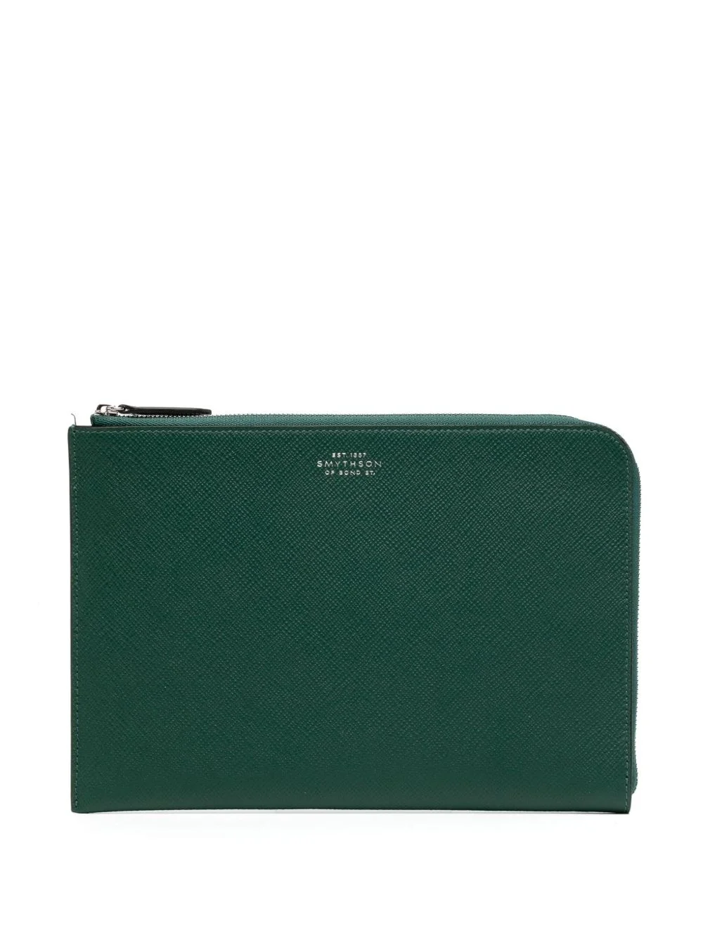 slim pouch bag Highlights - Forest green - Top zip fastening - Internal slip pocket - Slip pocket to the rear Imported Composition Outer: Grained Calf Leather 100% SIZE & FIT Measurement DEPTH 1.18 in(3 cm) LENGTH 7.48 in(19 cm) WIDTH 10.23 in(26 cm)