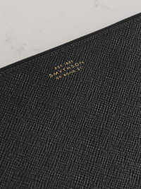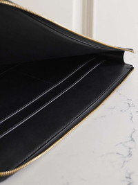 EDITORS'NOTES Smythson has over 130 years of experience in crafting fine leather pieces, which have been loved by the likes of Queen Victoria and Grace Kelly. This laptop case is made from its signature 'Panama' cross grain leather in a sleek shape with internal padding and pockets to organize additional essentials. The stamped gold logo is an assurance of quality. SIZE & FIT This item’s measurements are: - Height: 25cm / 9.8in - Width: 34.5cm / 13.6in - Depth: 2.5cm / 1in DETAILS & CARE - Black Panama textured-leather (Calf) - Zip fastening along top and sides