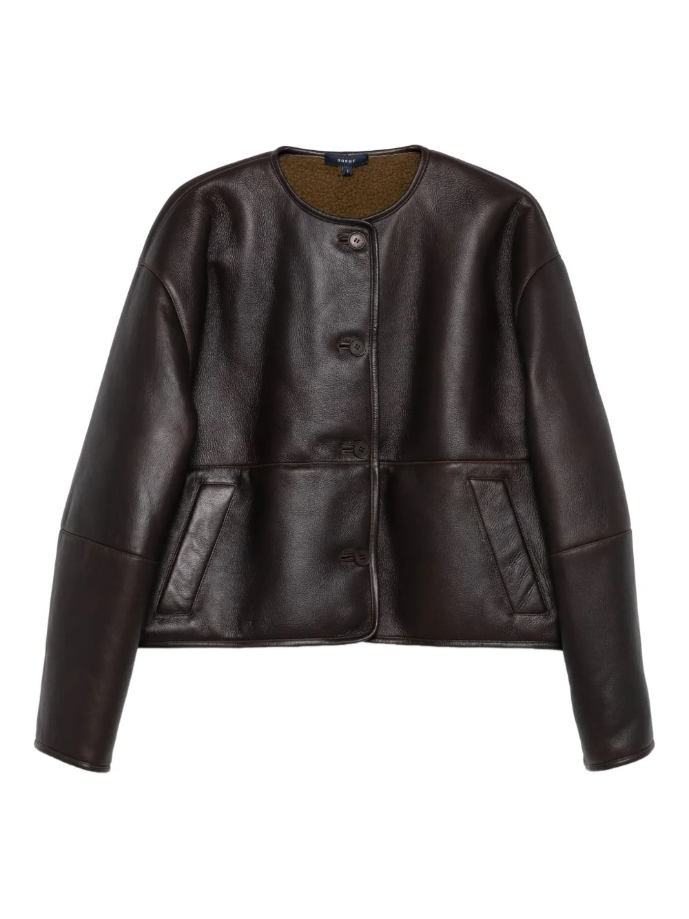 buttoned leather jacket Highlights - Dark brown - Leather - Button front fastening - Side pockets - Round neckline Imported Composition Outer: Lambskin 100% Lining: Cotton 100% SIZE & FIT Model measurements Height 5 ft 9 in(1.75 m) Bust/Chest 34.64 in(88 cm) Hips 36.61 in(93 cm) Waist 26.37 in(67 cm) Washing instructions Specialist Cleaning