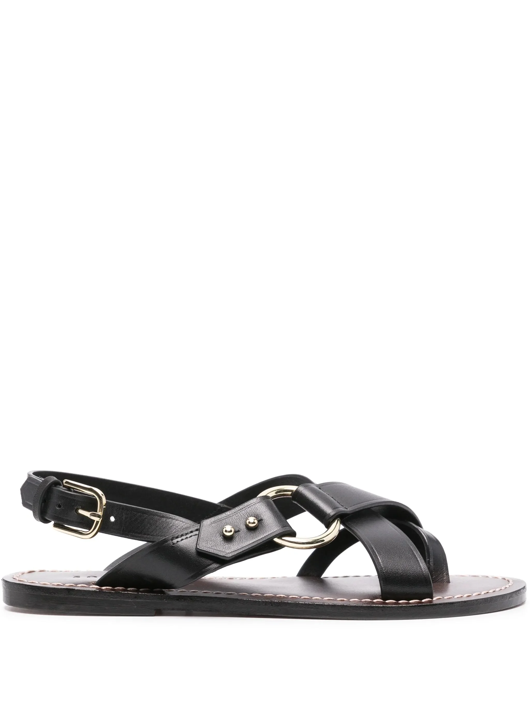 black calf leather smooth grain almond open toe single toe strap crossover strap at the toe ring embellishment branded leather insole leather sole side buckle fastening This piece comes complete with a protective dust bag. - heel: 1.0 centimetres - Color: BLACK - Made in: India - Designer Style ID: CHA0400 FLORENCE NOIR Composition and care Leather: 100.0%