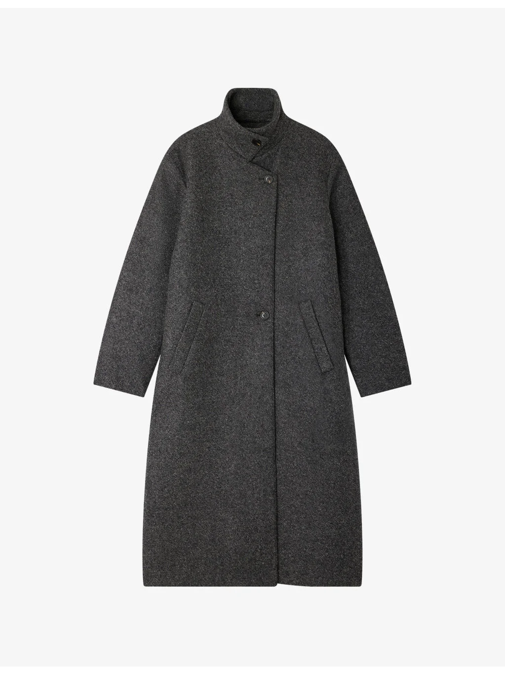 PRODUCT DETAILS - Soeur wool-blend coat - 97% virgin wool, 3% polyamide - Exposed button fastening at front - Oversized fit, high neck, long sleeves, two piped welt pockets to front, double mottled finish, single vent to back hem - Dry clean only - True to size - Heavyweight, non-stretch Ref: R04527026