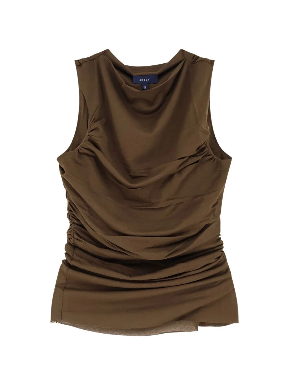 Irina gathered top Highlights - Khaki - Draped detail - Asymmetric hem - Round neck - Sleeveless - Gathered detail Imported Composition Fabric 100% Washing instructions Read Manufacturer Guidelines