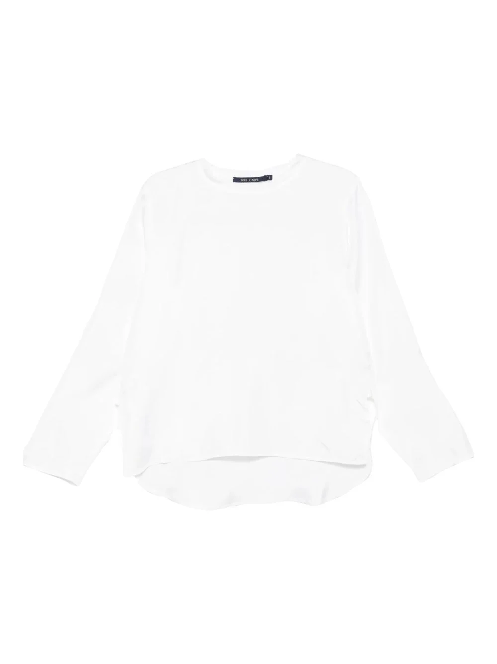 long-sleeve satin blouse Highlights - Off-white - Long sleeves - Satin finish - Round neck - Curved hem Imported Composition Fabric 100% Washing instructions Read Manufacturer Guidelines