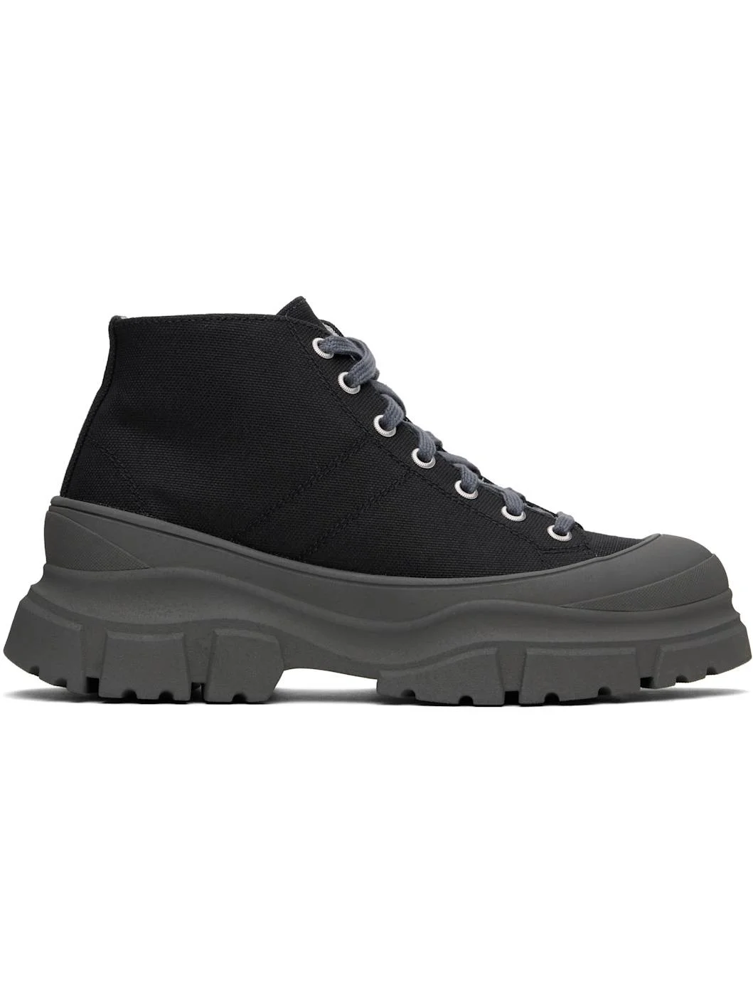High-top canvas sneakers in black. · Rubber cap toe · Lace-up closure · Grained leather lining · Treaded rubber platform sole · Platform: H2.5" Supplier color: Black Upper: textile. Sole: rubber. Made in Italy 251668F127002