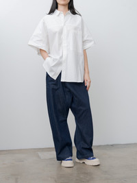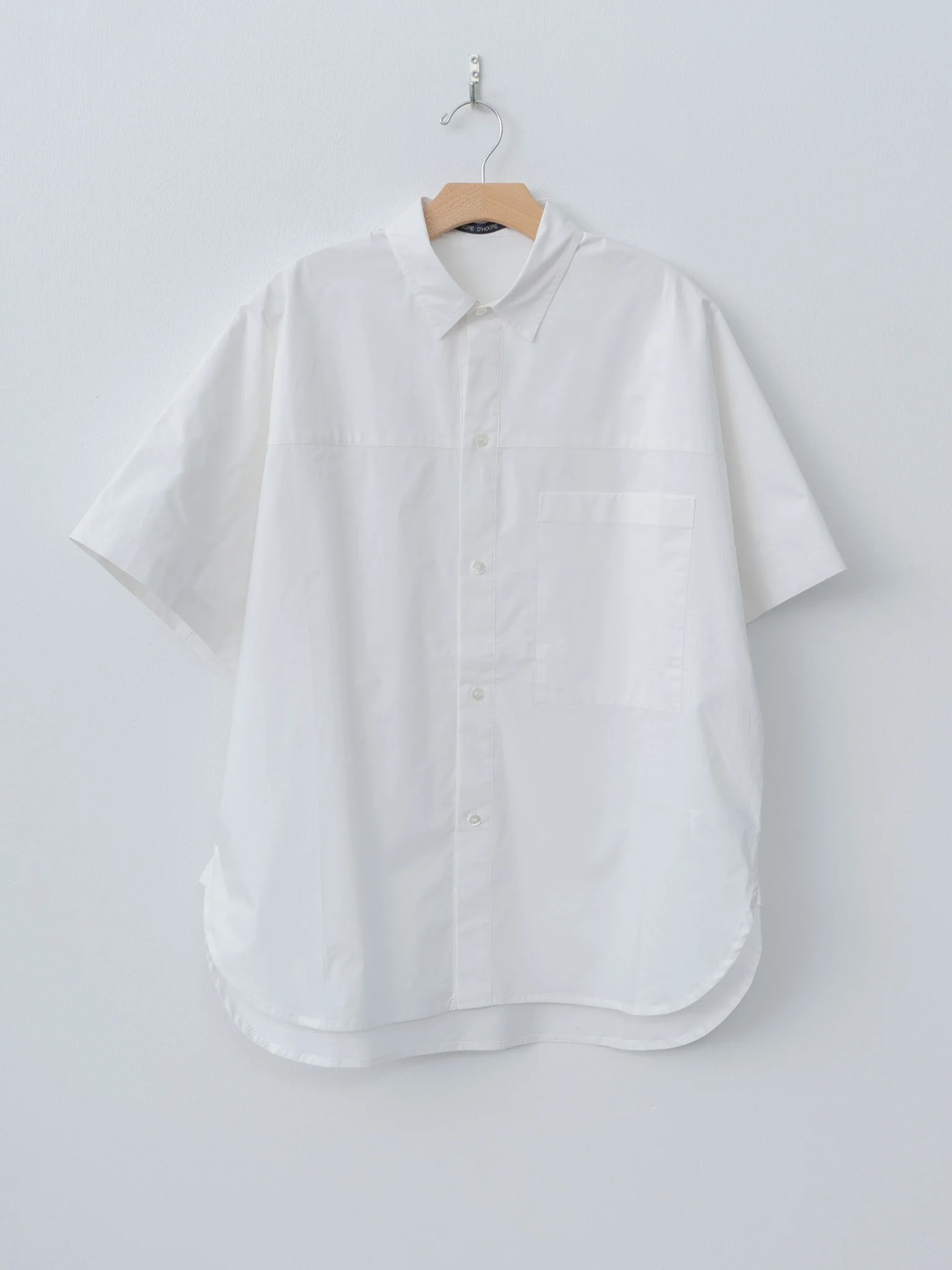 The Budapest is an oversized short sleeve button down shirt made in a crisp cotton poplin. It features grown on sleeves, a front patch pocket and a rounded hem with a slightly longer length in the back. - Made in Portugal - 100% Cotton Poplin - Available in Off White and Black - The model is 5'7" / 170 cm and wears size 36/S