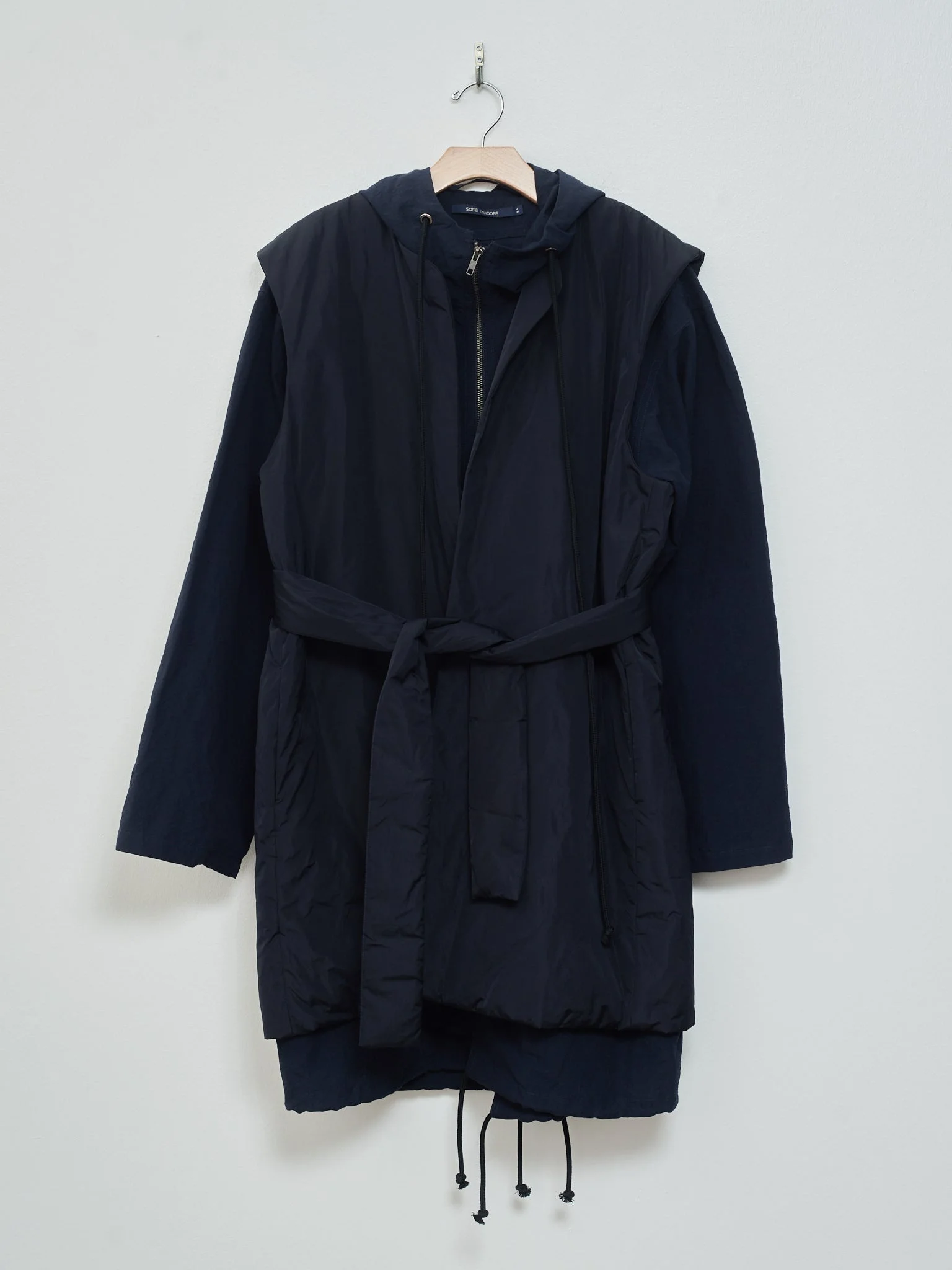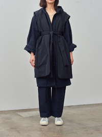This oversized parka from Sofie D'Hoore is two in one - it features a detachable vest and belt to wear in a variety of ways. The parka is made from a beautifully textured linen/cotton blend and features adjustable drawstrings at the hem and hood, patch pockets with snap buttons, and a back vent. The vest features side pockets and comes with an optional tonal belt. Relaxed fit - we recommend size 34 for XS/S, 36 for M/L. - Made in Bulgaria - Vest/Belt: 100% Polyester - Parka: 58% Linen, 42% Cotton - Available in Calcium/Ice and Night/Midnight - Model is 5'7/170 cm and wears a size XS