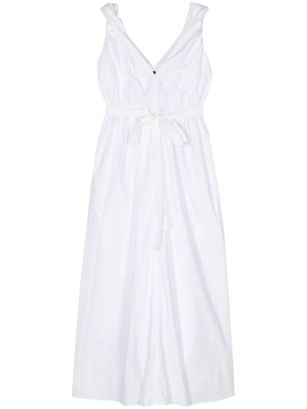 Diabolo belted maxi dress Highlights - White - Cotton - Taffeta - Twist detailing - Plunging v-neck - Sleeveless - Elasticated waistband - Detachable waist belt - Flared skirt - Two side inset pockets - Unlined - Straight hem - Maxi Imported Composition Cotton 100%