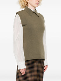 May polo-collar wool vest Highlights - Sage green - Polo neck - Sleeveless - Straight hem - Wool Made in Italy Composition Wool 100% SIZE & FIT Model measurements Height 5 ft 9 in(1.75 m) Bust/Chest 34.64 in(88 cm) Hips 36.61 in(93 cm) Waist 26.37 in(67 cm) Washing instructions Hand Wash