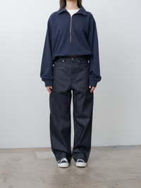 The Peggy Denim Trouser is a wide, straight-leg style from Sofie D'Hoore—we love its cool, slouchy silhouette worn at the natural waist. This season’s iteration is crafted from midweight raw denim with a structured feel and finished with tonal stitching for a clean look. Details include classic five-pocket construction and a button fly. - Made in Italy - 100% Cotton - Available in Raw Denim - The model is 5'7"/170 cm and wears size 34/XS - The waist runs large - we recommend sizing down