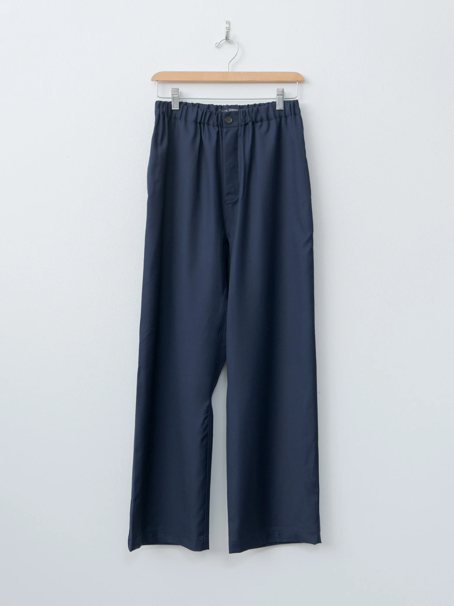 The Pinot Trouser in Admiral is a relaxed fitting straight leg style with a slight drop crotch, crafted from a lightweight, Super 110s suiting wool. It features a fully elasticated waistband, single button closure with a zip fly, slanted side pockets, and a single patch pocket at the back. - Made in the EU - 100% Wool 110s - Available in Admiral (navy) - The model is 5'8"/173cm and wears size 36/S