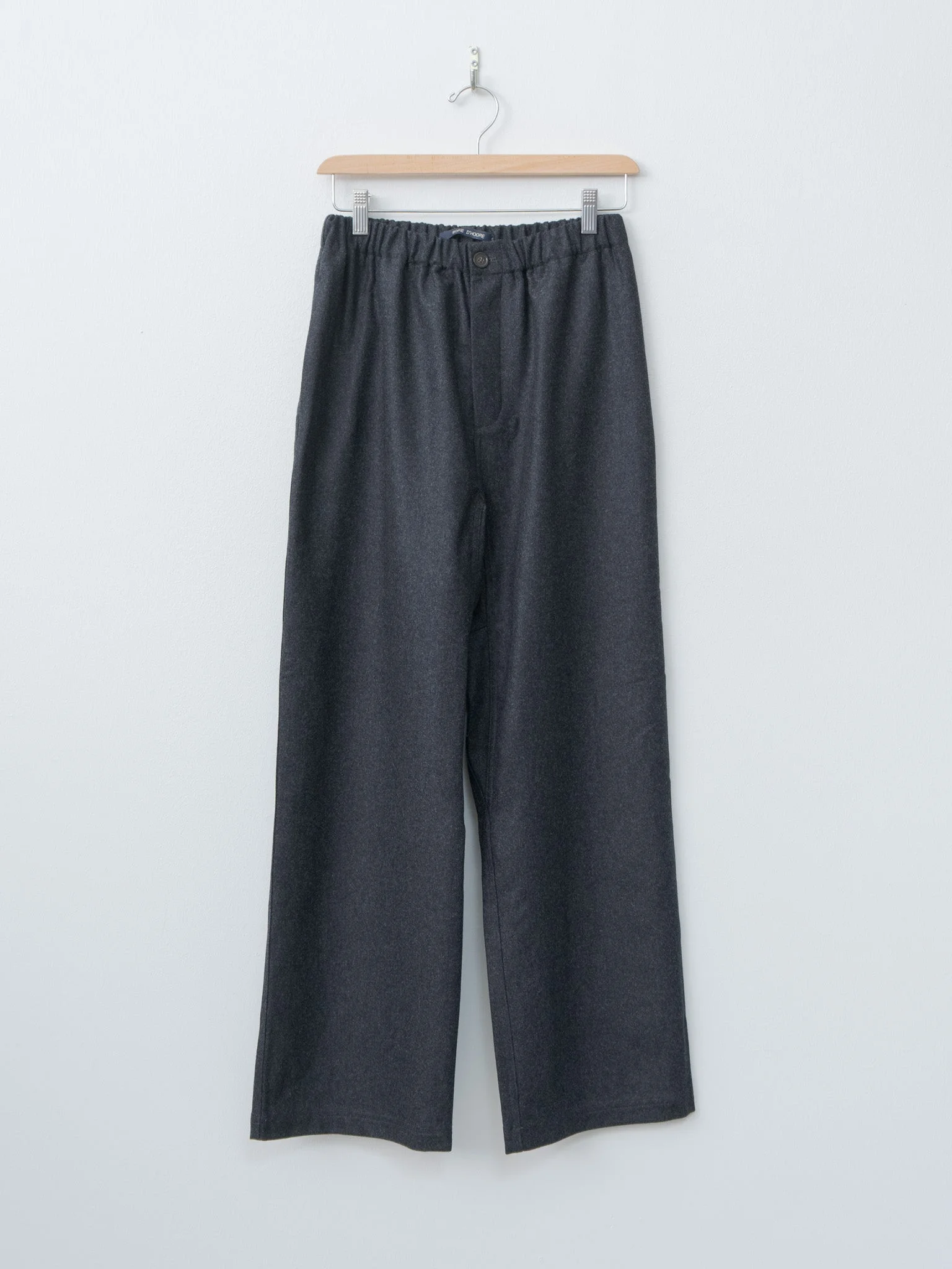 The Pinot Trouser is a relaxed fitting straight leg style with a slight drop crotch, crafted from a lightweight, warm and incredibly smooth virgin wool. It features a fully elasticated waistband, single button closure with a zip fly, slanted side pockets, and a single patch pocket at the back. Coordinating item with Cimabue Jacket in Anthracite Melange. - Made in the EU - 100% Virgin Wool - Available in Anthracite Melange - The model is 5'8"/173cm and wears size 36/S