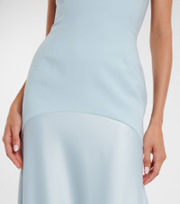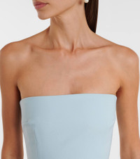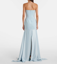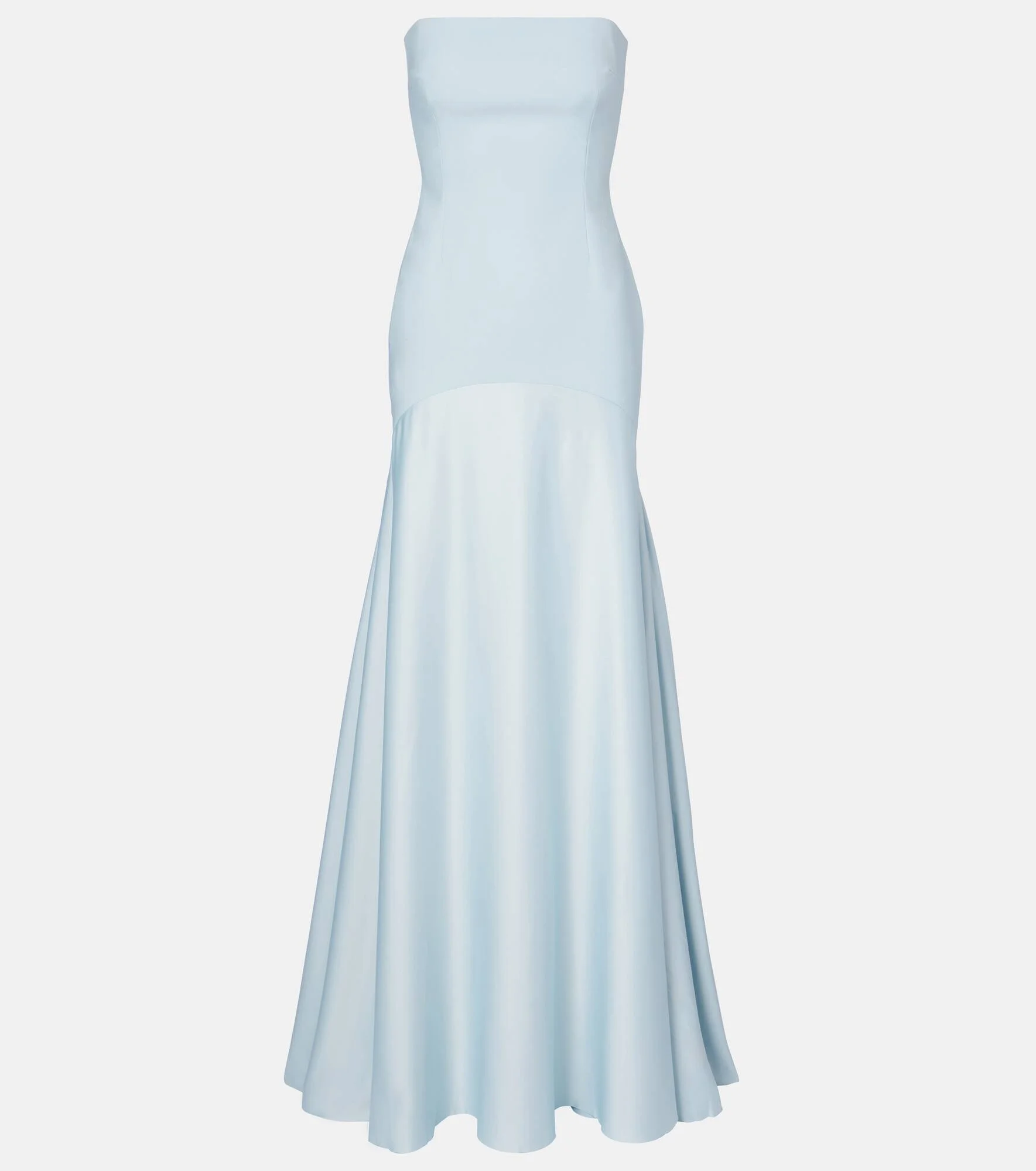 The Solace London Alessandra gown is crafted with a strapless neckline and sculpted bodice. Designed for a sleek silhouette, it falls to a fluid floor-length skirt and fastens with a concealed zip at the back. Product Details - Material: 100% polyester - Care instructions: dry clean - Made in China - Designer color name: Arctic Blue - Item color: blue - Closure: zipped back - Long vent - Boning - Lining: 95% polyester, 5% elastane - Item number: P01066825 Size & Fit - Fits large to size - we recommend trying one size smaller - Strapless - Internal boned corset for support - Fitted bodice, loose skirt - Non-stretchy fabric - The model seen in the picture is 178cm-5'10" and wearing a size UK 4