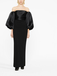 Carmen off-the-shoulder gown Solace London offers an elegant design with this evening gown. Crafted to a floor-length silhouette, it is finished with long puff sleeves for a contemporary twist. Imported Composition Polyester 100% SIZE & FIT Model measurements Height 5 ft 10 in(1.79 m) Bust/Chest 31.49 in(80 cm) Hips 35.03 in(89 cm) Waist 23.62 in(60 cm) Measurement BUST 32.28 in(82 cm) LENGTH 53.14 in(135 cm) WAIST 25.98 in(66 cm) SLEEVE LENGTH 17.71 in(45 cm) HIPS 34.64 in(88 cm)