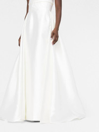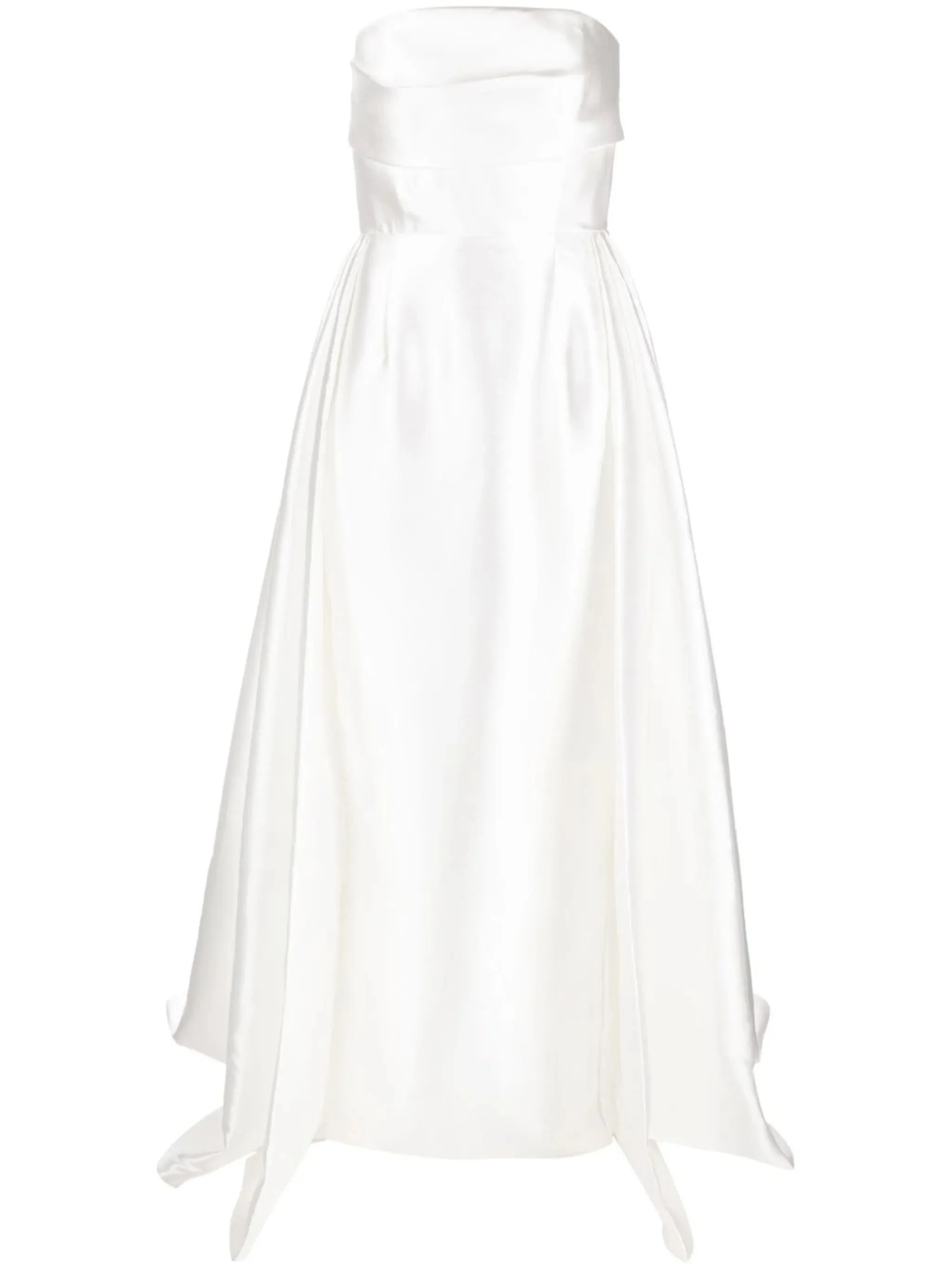 cream white bandeau style metallic sheen strapless inverted pleat flared skirt rear zip fastening high-low hem floor-length - Color: WHITE - Made in: China - Designer Style ID: OS34030 CREAM Composition and care Outer Composition Polyester: 100.0%, Lining Composition Polyester: 95.0%, Lining Composition Spandex/elastane: 5.0%