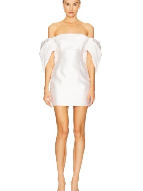- Self: 100% poly Lining: 95% poly 5% elastane - Made in China - Dry clean only - Fully lined - Hidden back zipper closure - Off-shoulder styling with oversized sleeves - Pleated twill fabric Due to the unique wash, color may vary slightly - Neckline to hem measures approx 22.5" in length - Revolve Style No. SOLA-WD180 - Manufacturer Style No. OS26085