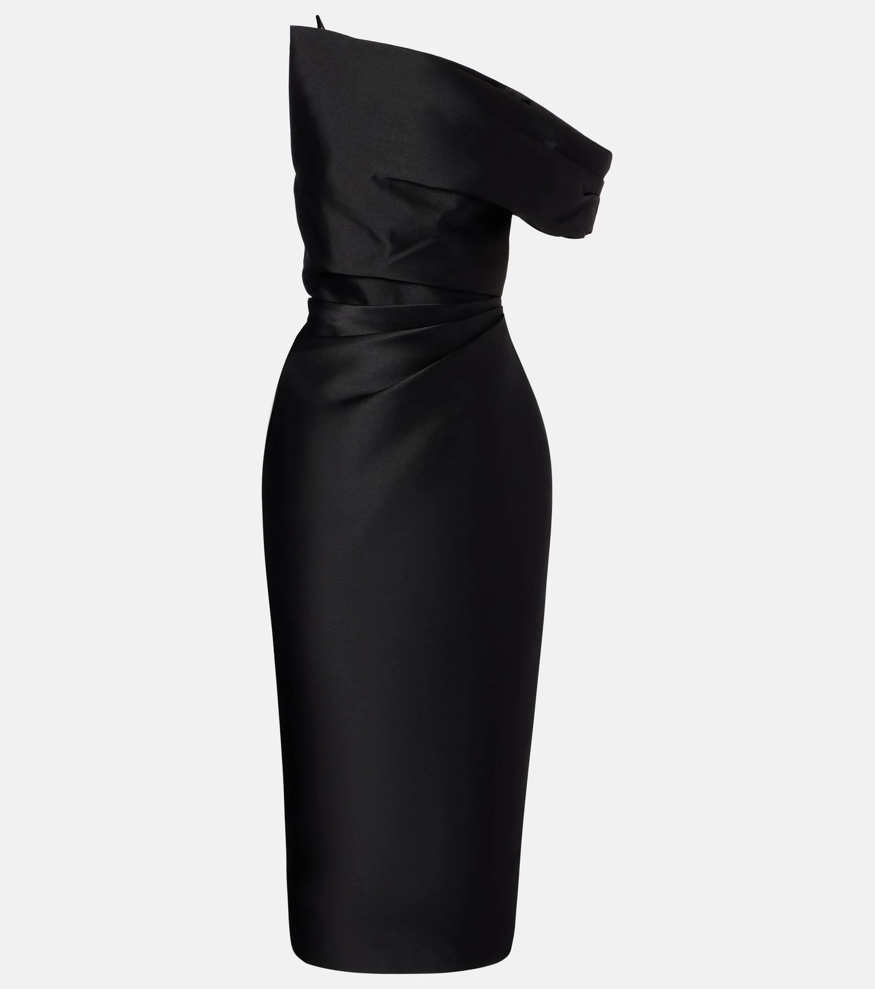 Solace London sets the golden standard for evening dressing, as seen in the Ellison cocktail dress. Cut from black satin, this style features a gathered waist and a one-shoulder asymmetric neckline for sculptural allure. Product Details - Material: 100% polyester - Care instructions: dry clean - Made in China - Designer color name: Black - Item color: black - Lining: 95% polyester, 5% elastane - Closure: zipped side - Long vent - Item number: P01066921 Size & Fit - True to size - Close fit at the waist - Cinched waist - Non-stretchy fabric - slit length 36cm-14" - The model seen in the picture is 178cm-5'10" and wearing a size UK 6