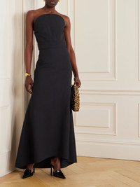 Co-founders Laura Taylor and Ryan Holliday-Stevens describe Solace London's collections as "bold, confident and refined". Cut from crepe, this 'Ember' dress has a curved strapless bodice and cinches at the belted waist before falling to a high-low hem. Size & Fit - Fits true to size, take your normal size - Designed for a slim fit - Lightweight, slightly stretchy fabric - Model is 177cm/ 5'10" and is wearing a UK 6 Model measurements: - Bust: 80cm/ 31.5" - Waist: 60cm/ 23.5" - Hip: 89cm/ 35" Details & Care - Black crepe - Concealed hook and zip fastening at back - 100% polyester - Dry clean