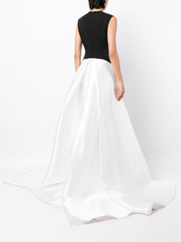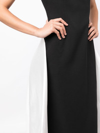 Flor sleeveless train dress Highlights - Black/white - Satin weave - Round neck - Sleeveless - Long length - Train Imported Composition Polyester 100% SIZE & FIT Model measurements Height 5 ft 10 in(1.77 m) Bust/Chest 31.49 in(80 cm) Hips 35.43 in(90 cm) Waist 25.19 in(64 cm) FittingInformation Designed for a close fit throughout Particularly long in length; consider your own measurements Made from a heavyweight non-stretch fabric This piece fits true to size – those with a petite frame may wish to take one size down Washing instructions Dry Clean Only