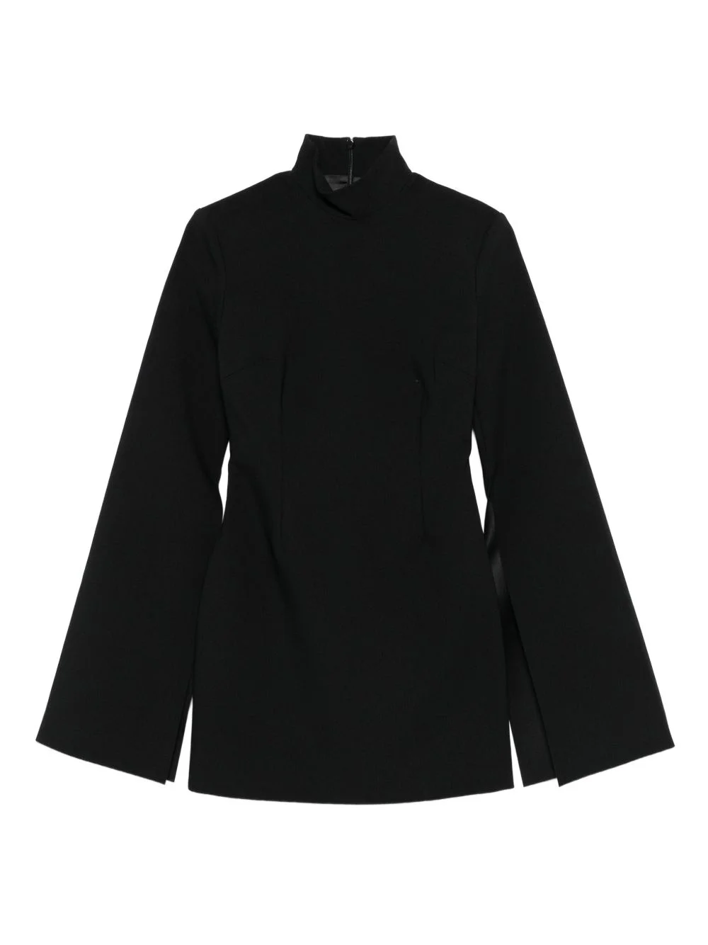 funnel-neck wide-sleeve mini dress Highlights - Black - Funnel neck - Long sleeves - Split cuffs - Rear zip fastening - Thigh length Imported Composition Fabric 100% SIZE & FIT Model measurements Height 5 ft 10 in(1.77 m) Bust/Chest 32.28 in(82 cm) Hips 35.03 in(89 cm) Waist 25.19 in(64 cm) Washing instructions Read Manufacturer Guidelines