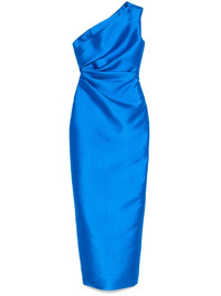 Kira maxi dress Highlights - Topaz blue - Interlock twill weave - Concealed side zip fastening - Draped detailing - One-shoulder - Sleeveless - Fitted waistline - Maxi skirt - Central rear vent - Full lining - Straight hem - Long length Imported Composition Lining: Polyester 95%, Elastane 5% Outer: Polyester 100% SIZE & FIT Model measurements Height 5 ft 10 in(1.77 m) Bust/Chest 30.7 in(78 cm) Hips 35.03 in(89 cm) Waist 23.62 in(60 cm) FittingInformation Designed for a slim fit that sits just away from the body offering a close yet comfortable fit Made from a midweight non-stretch fabric