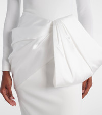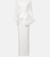 Bold, confident, refined – Solace London offers an extensive selection of polished eveningwear for your special occasions. The Kori gown is cut to a minimalist column silhouette and finished with a draped satin detail at the hips. Product Details - Material: 95% polyester, 5% elastane - Care instructions: dry clean - Made in China - Designer color name: Cream - Item color: white - Lining: 95% polyester, 5% elastane - Trim: 100% polyester - Closure: zipped back - Long vent - Fully lined - Item number: P01096615 Size & Fit - Fits small to size - we recommend trying one size larger - Off-the-shoulder - Cinched waist - Non-stretchy fabric - slit length 64cm-25" - The model seen in the picture is 178cm-5'10" and wearing a size UK 8