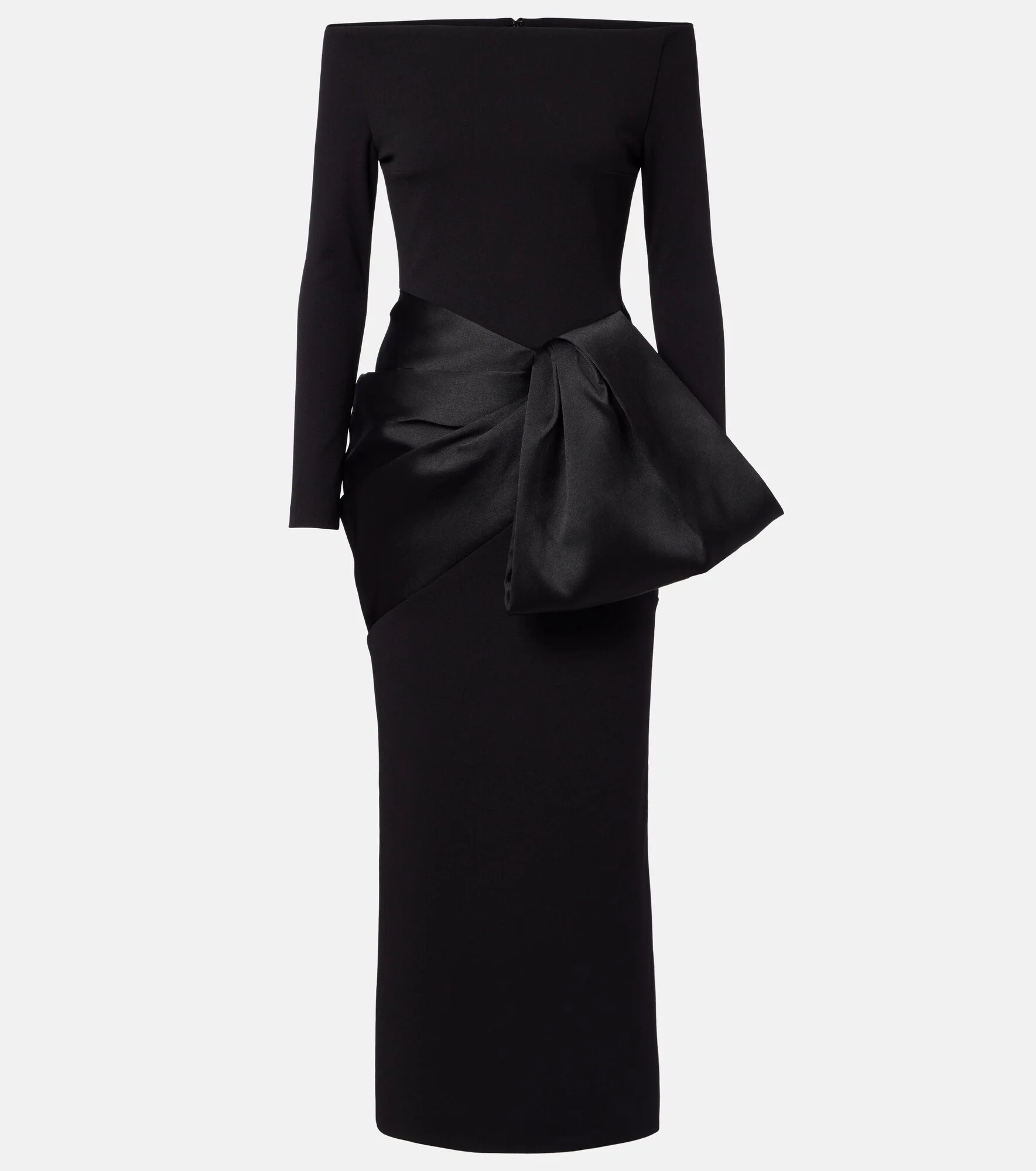 Bold, confident, refined – Solace London offers an extensive selection of polished eveningwear and sophisticated daywear. The Rhianne cocktail dress boasts an off-shoulder neckline and a satin bow detail elegantly draped across the hips and waistline. Product Details - Material: 95% polyester, 5% elastane - Care instructions: dry clean - Made in China - Color: black - Designer color name: Black - Lining: 100% polyester - Closure: concealed zipped back - Item number: P01149706 Size & Fit - True to size - Off-the-shoulder - Fitted - Slightly stretchy fabric - slit length 44cm-17.5" - The model seen in the picture is 178cm-5'10" and wearing a size UK 6