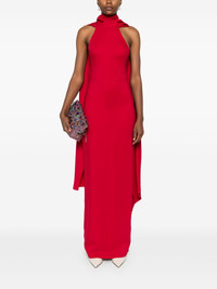 Emerson gown Highlights - Ruby red - Stretch-design - Crepe texture - Concealed rear hook and zip fastening - Halterneck - Attached scarf - Sash detail - Adjustable spaghetti straps - Sleeveless - Rear slit - Full lining - Straight hem - Full-length Imported Composition Outer: Viscose 97%, Elastane 3% Lining: Polyester 95%, Elastane 5% SIZE & FIT Model measurements Height 5 ft 11 in(1.8 m) Bust/Chest 31.49 in(80 cm) Hips 36.61 in(93 cm) Waist 24.4 in(62 cm) FittingInformation Designed for a slim fit that sits just away from the body offering a close yet comfortable fit The vented hem offers movement at the rear Made from a midweight stretch fabric, this piece offers elasticity and flexibility when worn Washing instructions Dry Clean Only