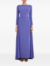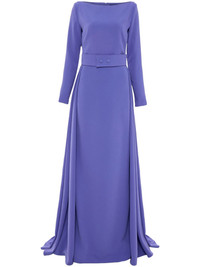 Shayla gown Highlights - Periwinkle purple - Crepe texture - Concealed rear zip fastening - Boat neck - Long sleeves - Belted waist - Draped panel detail - Floor-length - Flared hem Imported Composition Polyester 100% SIZE & FIT Measurement SLEEVE LENGTH 22.44 in(57 cm) HIPS 36.22 in(92 cm) LENGTH 59.44 in(151 cm) WAIST 27.55 in(70 cm) FittingInformation Designed for a close fit at the chest and waist with a loose fit at the hip The belt offers adjustability for fitted preferences Made from a midweight non-stretch fabric, this piece offers minimal elasticity when worn