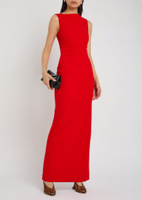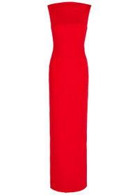 Info & Care Solace London crepe dress Wide-neck, tab across low back, back vent, fully lined Concealed zip fastening at back 95% polyester, 5% elastane Dry clean Size & Fit Length shoulder to hem: 60 inches/ 152.5cm Midweight Slim fit, straight cut Model is 5'10"/ 178cm and wears a size UK8