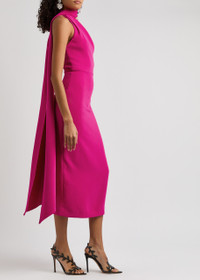 Solace London Samira One-shoulder Scarf-effect Midi Dress