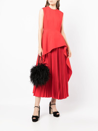 sleeveless flared midi dress sleeveless flared midi dress from Solace London featuring bright red, flared, ruffled detailing, crew neck, sleeveless and mid-length. Imported Composition Polyester 100% SIZE & FIT Model measurements Height 5 ft 11 in(1.8 m) Bust/Chest 28.34 in(72 cm) Hips 35.43 in(90 cm) Waist 23.62 in(60 cm) FittingInformation This piece fits true to size. We recommend you get your regular size Designed for a close fit at the bust and waist, but loose at the hip Made with a mid-weight fabric