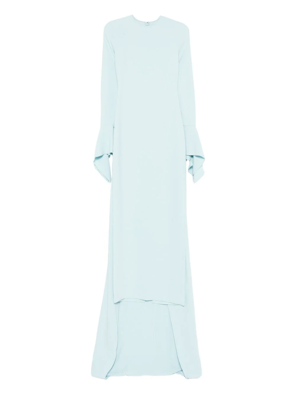 The Blake maxi dress Highlights - Light blue - Bell sleeves - Layered skirt - Round neck - Long sleeves Imported Composition Polyester 100% SIZE & FIT Model measurements Height 5 ft 9 in(1.75 m) Bust/Chest 32.67 in(83 cm) Hips 36.22 in(92 cm) Waist 24.8 in(63 cm) Washing instructions Dry Clean Only