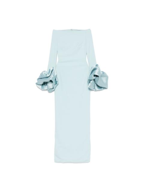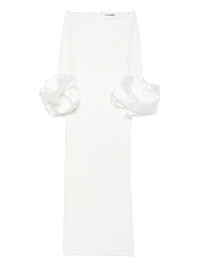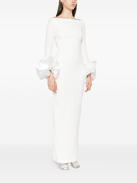 Talia ruffle-cuff maxi dress Highlights - White - Off-shoulder neck - Long sleeves - Ruffle cuffs - Fitted bodice - Maxi length Imported Composition Polyester 95%, Elastane 5% SIZE & FIT Model measurements Height 5 ft 10 in(1.78 m) Bust/Chest 33.85 in(86 cm) Hips 36.61 in(93 cm) Waist 26.77 in(68 cm) Washing instructions Dry Clean Only