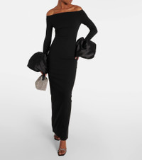Product Details - Material: 95% polyester, 5% elastane - Care instructions: dry clean - Made in China - Designer color name: Black - Material II: 100% polyester - Closure: zipper, hook fastening - Item number: P00959019 Size & Fit - True to size - Off-the-shoulder - Fitted - Non-stretchy fabric - slit length 60,0cm-23.5" - The model seen in the picture is 178cm-5'10" and wearing a size UK 6
