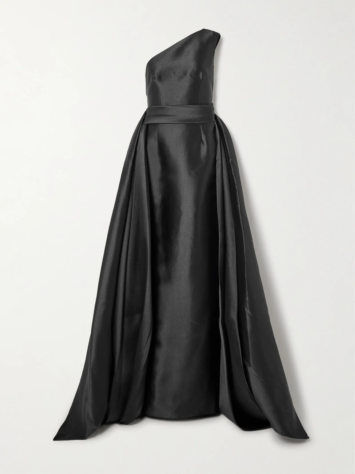 Solace London's contemporary gowns ensure you'll make a lasting impression at your next event. This 'The Charo' style is cut from satin-twill with a sweeping one-shoulder neckline and draped panels that cascade from the cinched waist. Wear yours with diamond earrings.