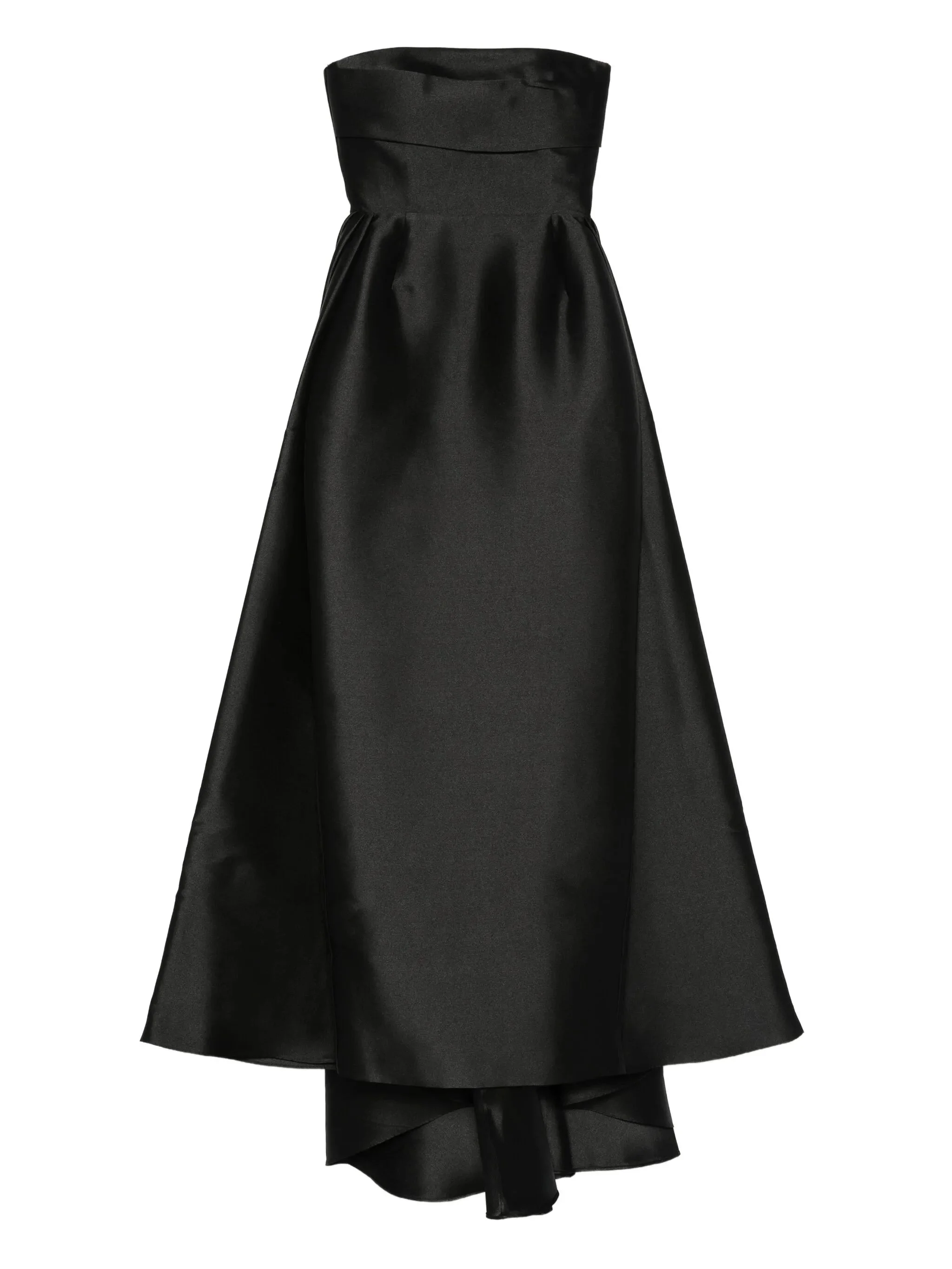 black strapless neckline layered skirt fitted bodice satin fabric - Color: BLACK - Made in: China - Designer Style ID: OS34030 BLACK Composition and care Outer Composition Polyester: 100.0%, Lining Composition Polyester: 95.0%, Lining Composition Elastane: 5.0%