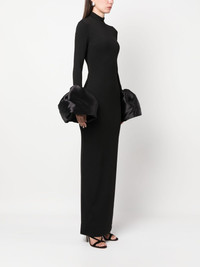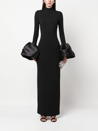 The Viviana long dress Highlights - Black - Stretch-design - Duchess satin weave - Mock neck - Rear zip fastening - Long sleeves - Flared cuffs - Ankle-length - Straight hem Imported Composition Polyester 95%, Spandex/Elastane 5% SIZE & FIT Model measurements Height 5 ft 10 in(1.78 m) Bust/Chest 33.46 in(85 cm) Hips 36.22 in(92 cm) Waist 23.22 in(59 cm) FittingInformation Designed for a close fit throughout The vented hem offers movement at the rear Made from a midweight stretch fabric, this piece offers elasticity and flexibility when worn This piece fits true to size – take your usual size Washing instructions Dry Clean Only