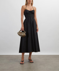 DETAILS Cotton sateen poplin dress Midi length Smocked bodice Separated cups Adjustable halter ties Full skirt Front pockets SIZE & FIT Model is 179cm/5'10.5"; Chest: 81cm; Waist: 64cm; Hip: 89cm and wears S COMPOSITION & CARE 100% Cotton Machine wash cold. Lay flat to dry. Do not tumble dry
