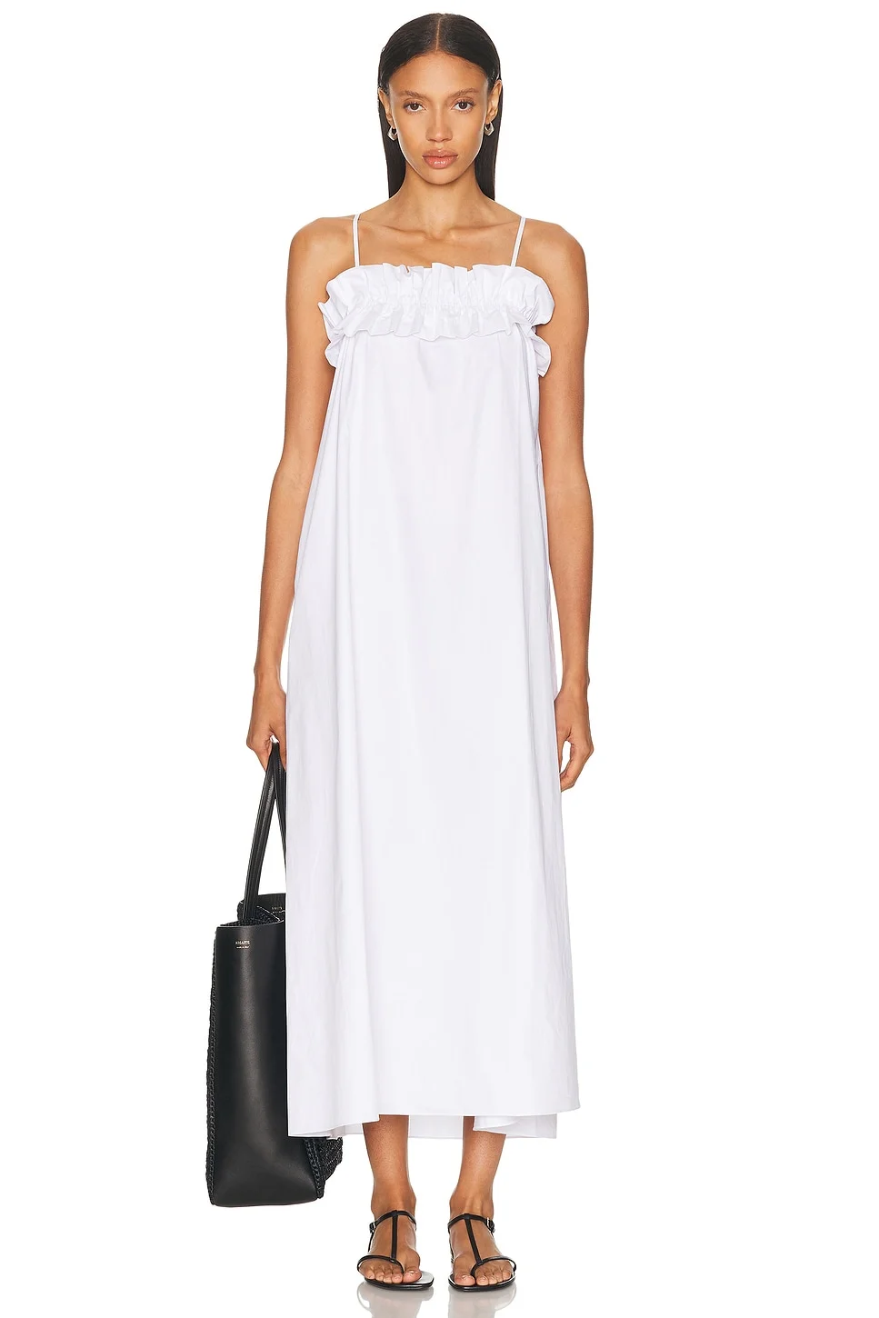 Details - 100% cotton - Hand wash - Unlined - Pull-on styling - Adjustable shoulder straps - Side slit pockets - Smocked ruffle detail at neckline - Poplin fabric - Made in China - Our Style No. SOLF-WD21 - Manufacturer Style No. SU25-R3356SP-OW