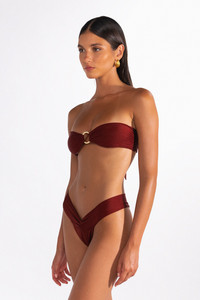 The Cece in Ribera by Sommer Swim is a classic bandeau bikini top featuring vintage gold ring hardware at the front and adjustable tie at the back. As part of Sommer Swim's Coco LaRouge swimwear collection, this bandeau bikini top has luxurious features which include a lustrous shine and double lining for comfort and support. Mix and match the Cece Ribera Top with any Sommer Swim bikini bottoms. For more timeless styles, explore our full bandeau bikini top collection for strap-free silhouettes crafted in luxury. DETAILS Features - Minimalistic bandeau bikini top - Back tie for adjustability - Vintage inspired alloy zinc gold ring - Luxurious feel - Lustrous shine - Double lined - Medium support - Finest quality Italian Xtra Life Lycra - 80% Nylon 20% Elastane Care Instructions To ensure correct treatment please refer to individual care labels on each product. Rinse after use, Cold gentle machine wash separately or hand wash with lukewarm water using mild detergent. Dry in shade. MODEL SIZE & FIT Our model is wearing a size S bikini bottom and size S bikini top. She is 178cm tall measuring 87cm bust, 61cm waist and 93cm hips with a full C cup.