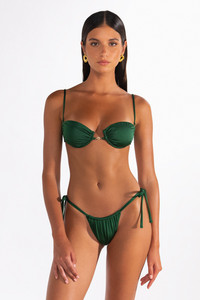 The Paloma in Ivy by Sommer Swim is a tie side bikini bottom featuring an adjustable brazillian cut. As part of Sommer Swim's Coco LaRouge swimwear collection, this tie side bikini bottom has luxurious features which include a lustrous shine and double lining for comfort. Mix and match the Paloma Ivy bottom with any Sommer Swim bikini tops. DETAILS Features - Tie side bikini bottom - Brazillian cut - Double stitching - Luxurious feel - Lustrous shine - Double lined - Finest quality Italian Xtra Life Lycra - 80% Nylon 20% Elastane Care Instructions To ensure correct treatment please refer to individual care labels on each product. Rinse after use, Cold gentle machine wash separately or hand wash with lukewarm water using mild detergent. Dry in shade. Model Size & Fit Our model is wearing a size S bikini bottom and size S bikini top. She is 178cm tall measuring 87cm bust, 61cm waist and 93cm hips with a full C cup.