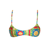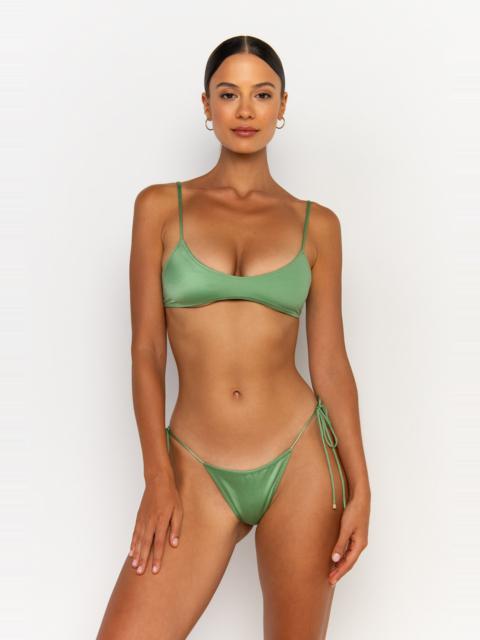 The Pilar in Posidonia by Sommer Swim is a bralette bikini top with adjustability for coverage and an embossed gold clip closure. As part of Sommer Swim's Dolce Mare swimwear collection, this bralette bikini top has luxurious features which include a lustrous shine and double lining for comfort and support. Mix and match the Pilar Posidonia Top with any Sommer Swim bikini bottoms. DETAILS Features - Bralette bikini top - Adjustable straps - Embossed gold clip closure - Luxurious feel - Lustrous shine - Double lined - Medium coverage - Finest quality Italian Xtra Life Lycra - 80% Nylon 20% Elastane Care Instructions To ensure correct treatment please refer to individual care labels on each product. Rinse after use, Cold gentle machine wash separately or hand wash with lukewarm water using mild detergent. Dry in shade. Model Size & Fit Our model is wearing a size M bikini top and size S bikini bottoms. She is 174cm tall measuring 88cm bust, 62cm waist and 95cm hips with a full C cup.