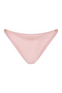 The Tiago in Bon Bon by Sommer Swim is a cheeky bikini bottom featuring custom jewellery like brushed vintage gold hardware and is designed to be worn medium to high waisted. As part of Sommer Swim's STARGIRL swimwear collection, this cheeky bikini bottom has luxurious features which include a lustrous silk effect shine and double lining for comfort. Mix and match the Tiago Bon Bon bottom with any Sommer Swim bikini tops. DETAILS Features - Cheeky mid to high waisted bikini bottom - Jewellery like fastening in brushed Vintage Gold - Silk Effect fabric - Luxurious feel - Lustrous shine - Double lined - 76% Nylon 24% Spandex Care Instructions To ensure correct treatment please refer to individual care labels on each product. Rinse in cold water and dry in shade. Model Size & Fit Adriana is wearing a size XS bikini top and size S bikini bottom. She is 172cm tall measuring 80cm bust, 61cm waist and 93cm hips with a 80B cup. Beth is wearing a size M bikini top and size M bikini bottom.She is 170cm tall measuring a92cm bust, 69cm waist and 103cm hips with a 34D cup.