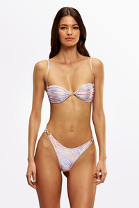 The Tiago in Zebra Haze by Sommer Swim is a cheeky bikini bottom featuring custom jewlery like brushed vintage gold hardware and is designed to be worn medium to high waisted. As part of Sommer Swim's STAR GIRL swimwear collection, this cheeky bikini bottom has luxurious features which include a lustrous silk effect shine and double lining for comfort. Mix and match the Tiago Zebra Haze bottom with any Sommer Swim bikini tops. DETAILS Features - Cheeky mid to high waisted bikini bottom - Jewelery like fastening in brushed Vintage Gold - Silk Effect fabric - Print hand drawn in Lake Como - Luxurious feel - Lustrous shine - Double lined - 76% Nylon 24% Spandex Care Instructions To ensure correct treatment please refer to individual care labels on each product. Rinse in cold water and dry in shade. MODEL SIZE & FIT Adriana is wearing a size XS bikini top and size S bikini bottom. She is 172cm tall measuring 80cm bust, 61cm waist and 93cm hips with a 80B cup. Beth is wearing a size M bikini top and size M bikini bottom. She is 170cm tall measuring a 92cm bust, 69cm waist and 103cm hips with a 34D cup.