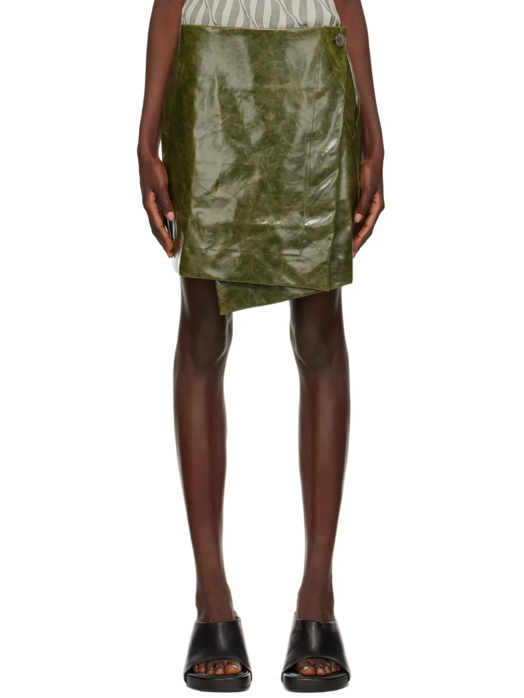 Green Wrap Around Faux-Leather Miniskirt