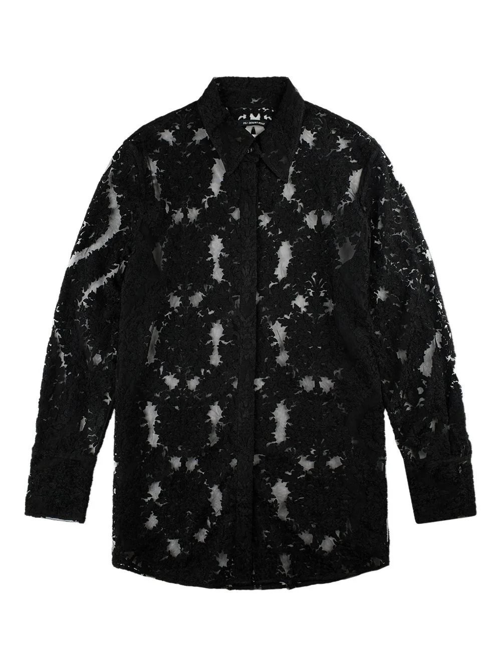 lace-patterned shirt Highlights - Black - Front button fastening - Semi-sheer construction - Pattern-lace detailing - Long sleeves - Buttoned cuffs - Straight hem Imported Composition Viscose 100%, Nylon 100%