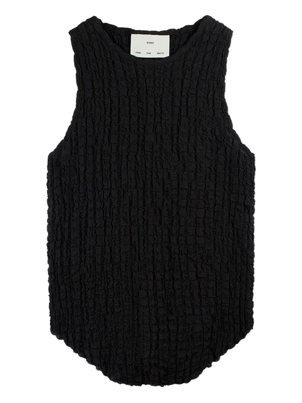 ruffled tank top Highlights - Black - Fully ruffled - Scoop neck - Sleeveless - Curved hem Imported Composition Cotton 73%, Nylon 25%, Polyurethane 2% Washing instructions Read Manufacturer Guidelines